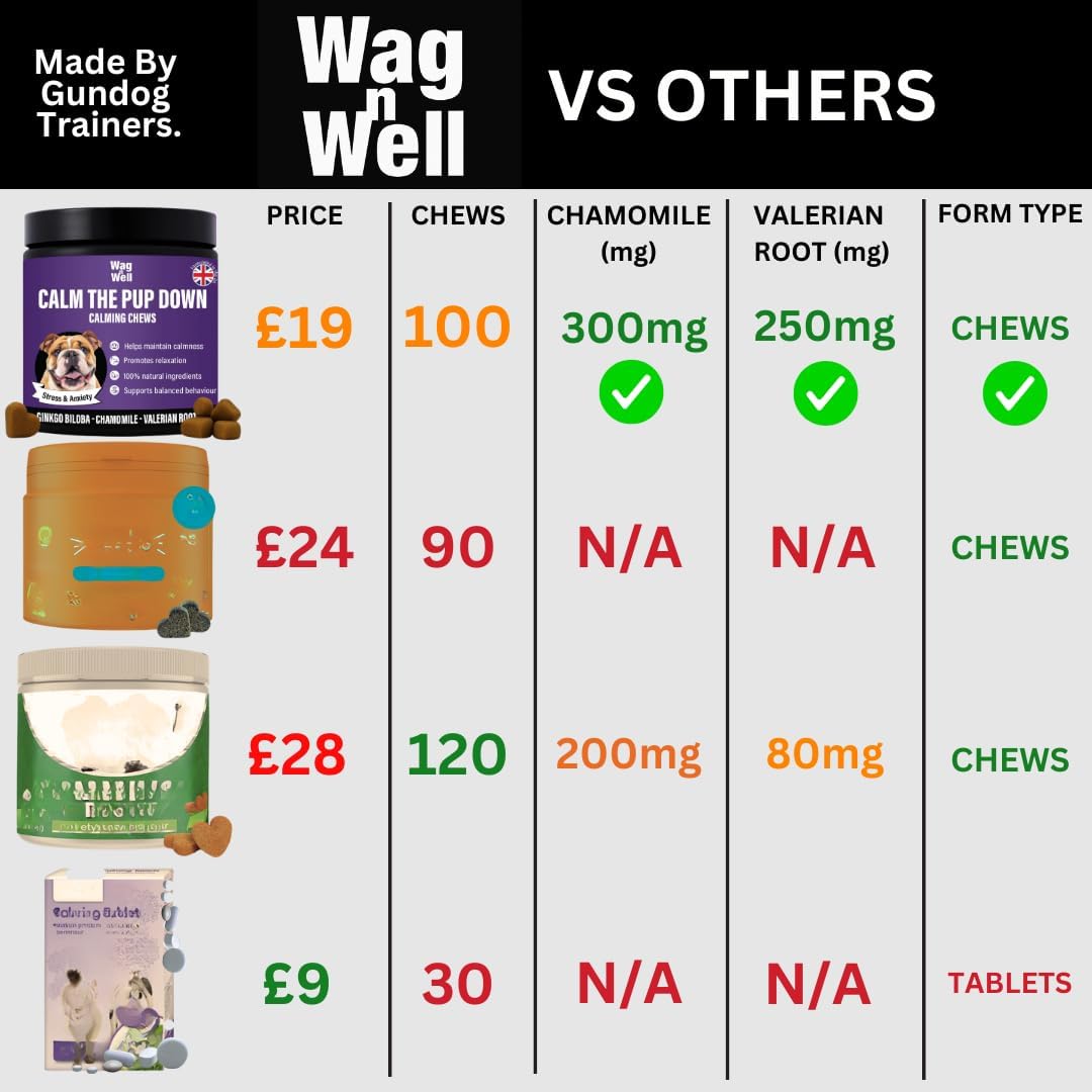 Whether it’s noisy fireworks, vet visits, travel, or everyday stress, give your dog the natural support they need to stay calm and happy with Wag n Well’s Calm The Pup Down Calming Chews.